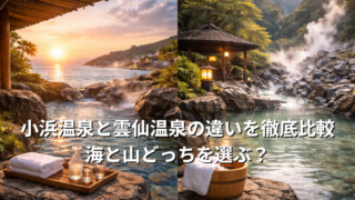 小浜温泉と雲仙温泉の違いを景観・泉質・雰囲気から徹底比較。海を望む開放的な湯か、硫黄香る高原リゾートか。長崎旅行で後悔しない選び方をやさしく解説します。