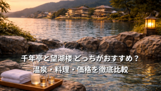 千年亭と望湖楼どっちがおすすめ?はわい温泉の人気宿を温泉・料理・価格の違いからやさしく徹底比較。30〜50代の夫婦・カップルが後悔しない選び方を分かりやすく解説します。