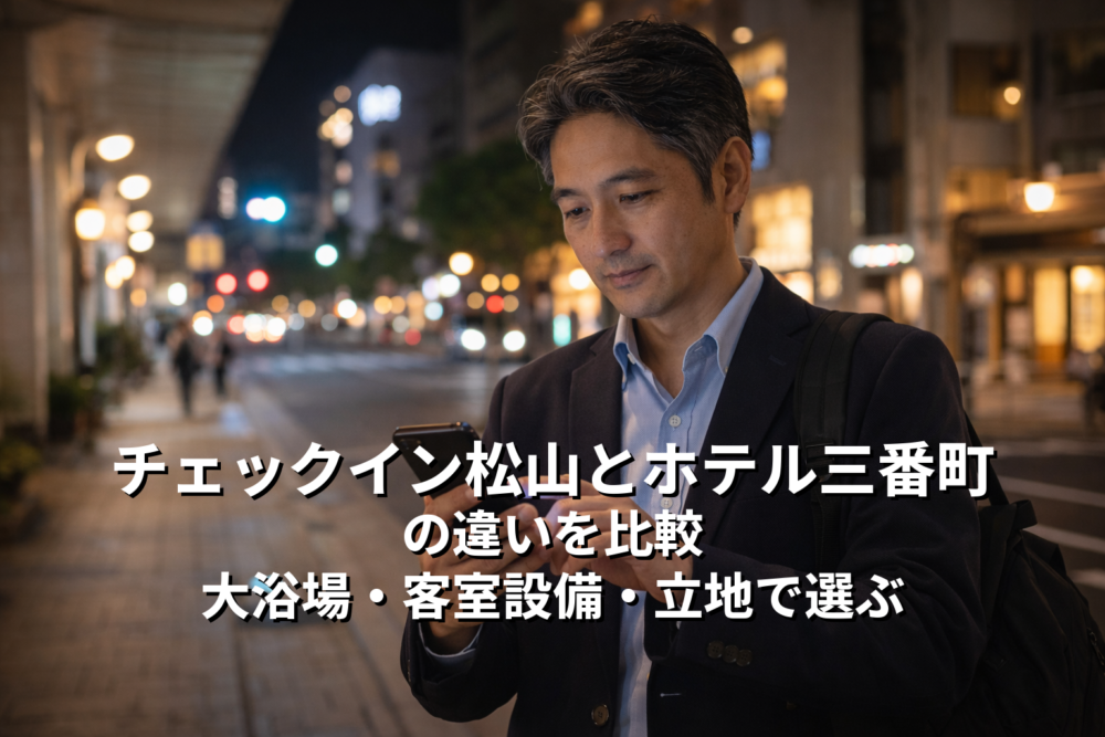 この記事では、チェックイン松山とホテル三番町の違いを、立地・大浴場・客室設備・駐車場・コスパの視点からわかりやすく比較します。