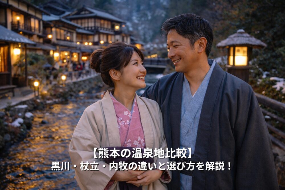 熊本には魅力的な温泉地がいくつもあり、特に 黒川温泉・杖立温泉・内牧温泉 は、それぞれ個性ある雰囲気と温泉体験が楽しめる人気エリアです。