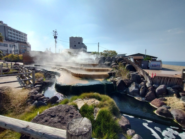 小浜温泉では海岸沿いの散策や足湯巡りが楽しめます。