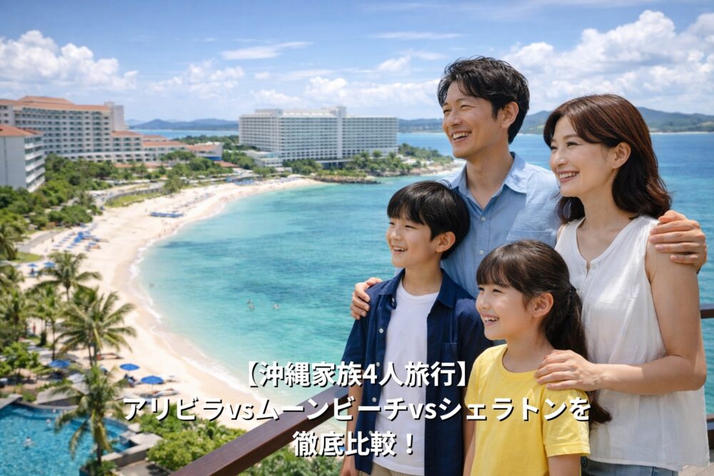この記事では、沖縄本島の人気リゾートホテル 「ホテル日航アリビラ」「ザ・ムーンビーチ ミュージアムリゾート」「シェラトン沖縄サンマリーナリゾート」 を、家族4人旅行の視点で徹底比較していきます。