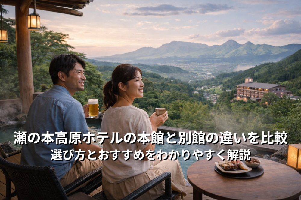 この記事では、瀬の本高原ホテルの本館と別館(新館)の違いを、部屋の新しさ、広さ、料金、眺望、温泉や食事会場への行きやすさといった視点から比較し、夫婦・カップル・子連れファミリーにはどちらがおすすめかを整理していきます。