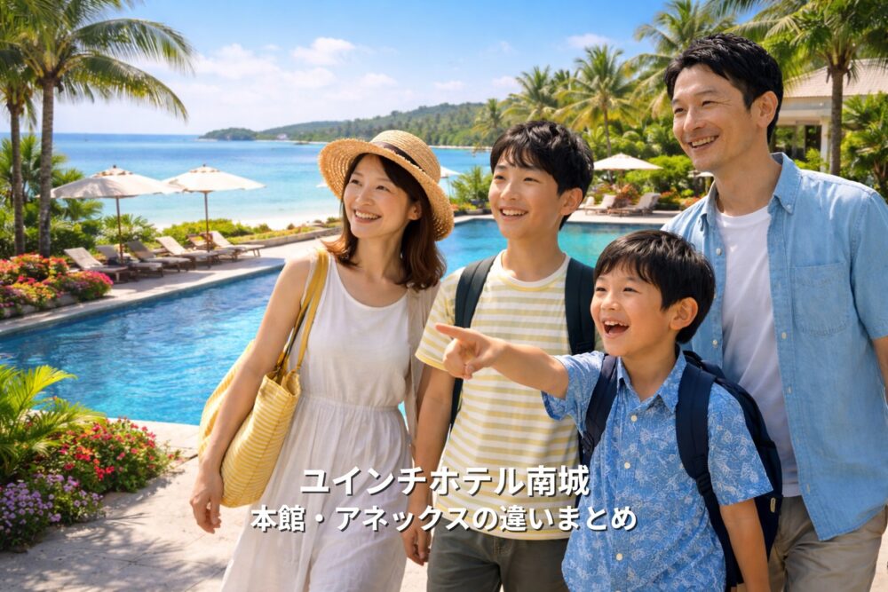 本記事では、ユインチホテル南城の「本館」と「アネックス(別館)」の違いを初めての方にもわかりやすく、表と文章で丁寧に解説していきます。